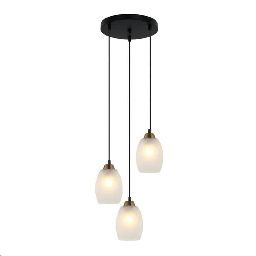 Elegante lámpara de diseño contemporáneo con tres copas ovaladas suspendidas desde una base negra de alta calidad. Con una longitud de 2 metros, proporciona una iluminación óptima para espacios amplios, creando ambientes sofisticados con su distribución de luz equilibrada y estética refinada.