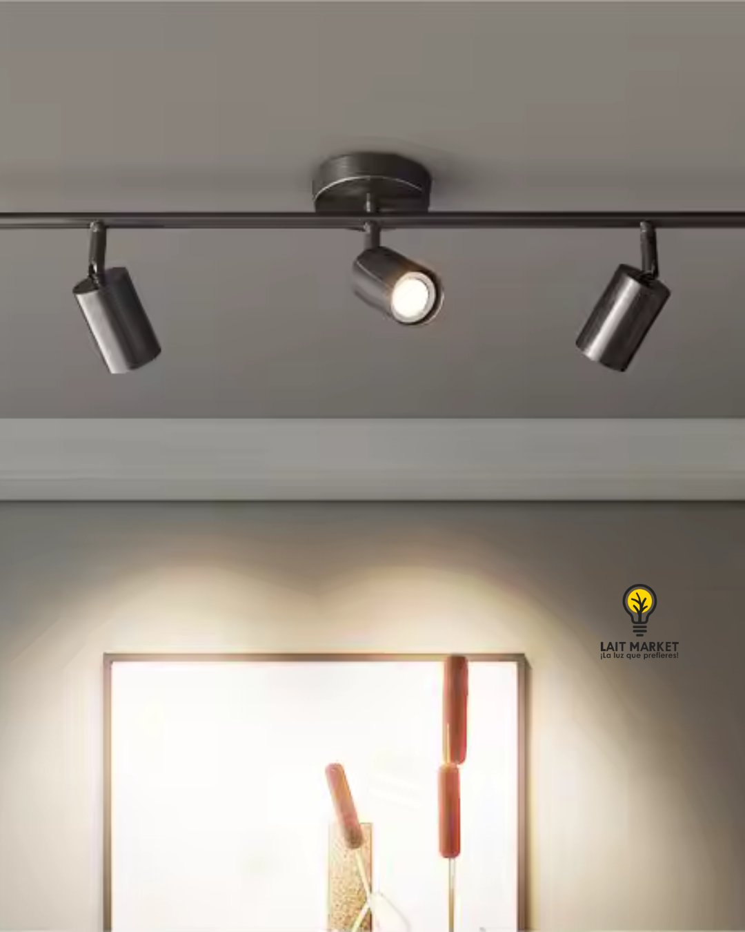 Lampara tipo riel base negra 3 focos 75 cm